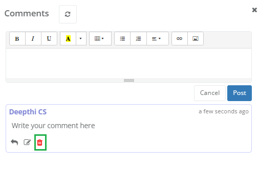 Type a comment in the text area and click Post to save the comment in the dashboard.
